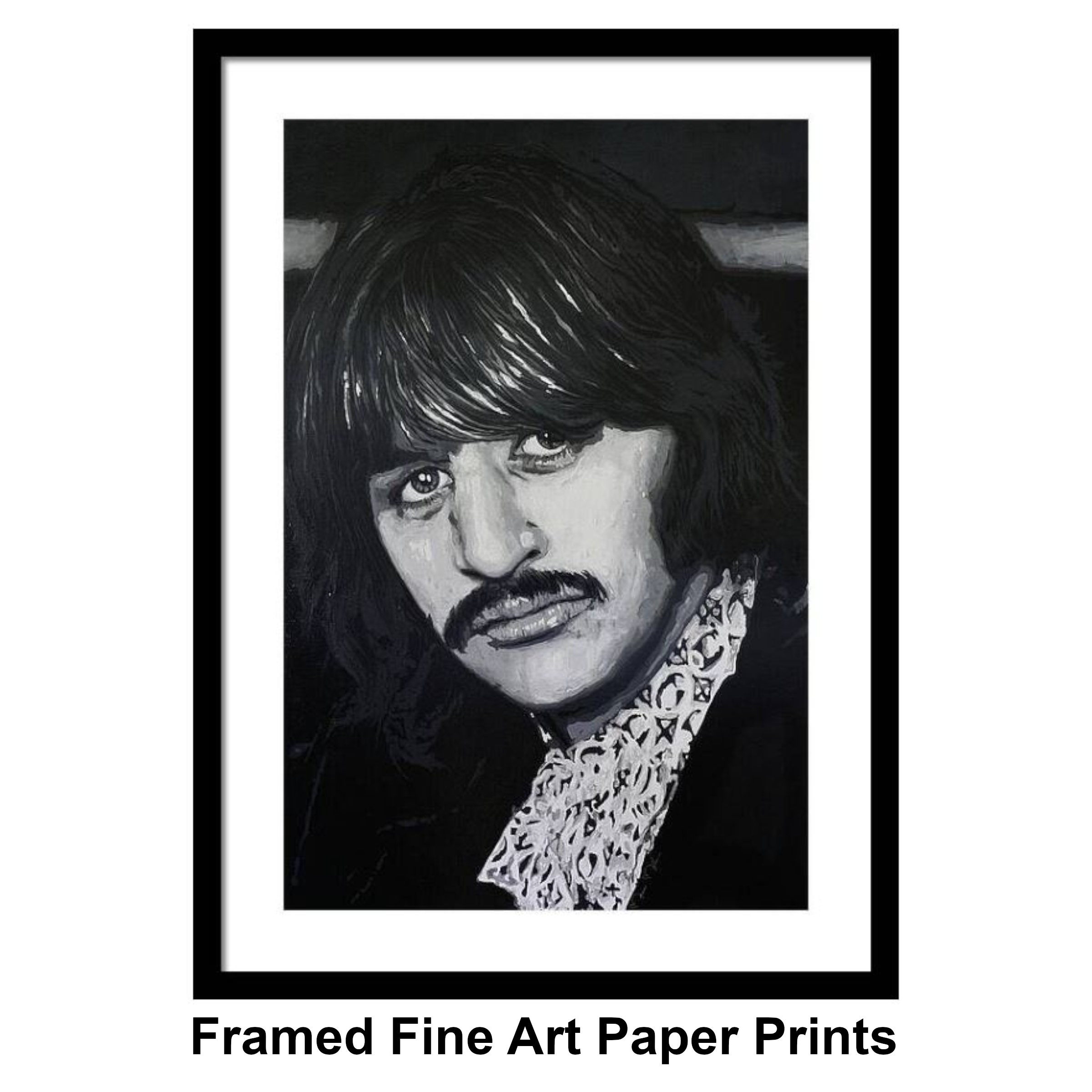 Painted entirely by hand, this artwork honors Ringo not as “just the drummer,” but as the soulful anchor of one of the most influential bands of all time. The subtle gradations of light and shadow emphasize his distinctive features and expressive gaze, creating a portrait that feels intimate and timeless. It’s a study in restraint—proof that strength and character don’t need to shout to be heard.